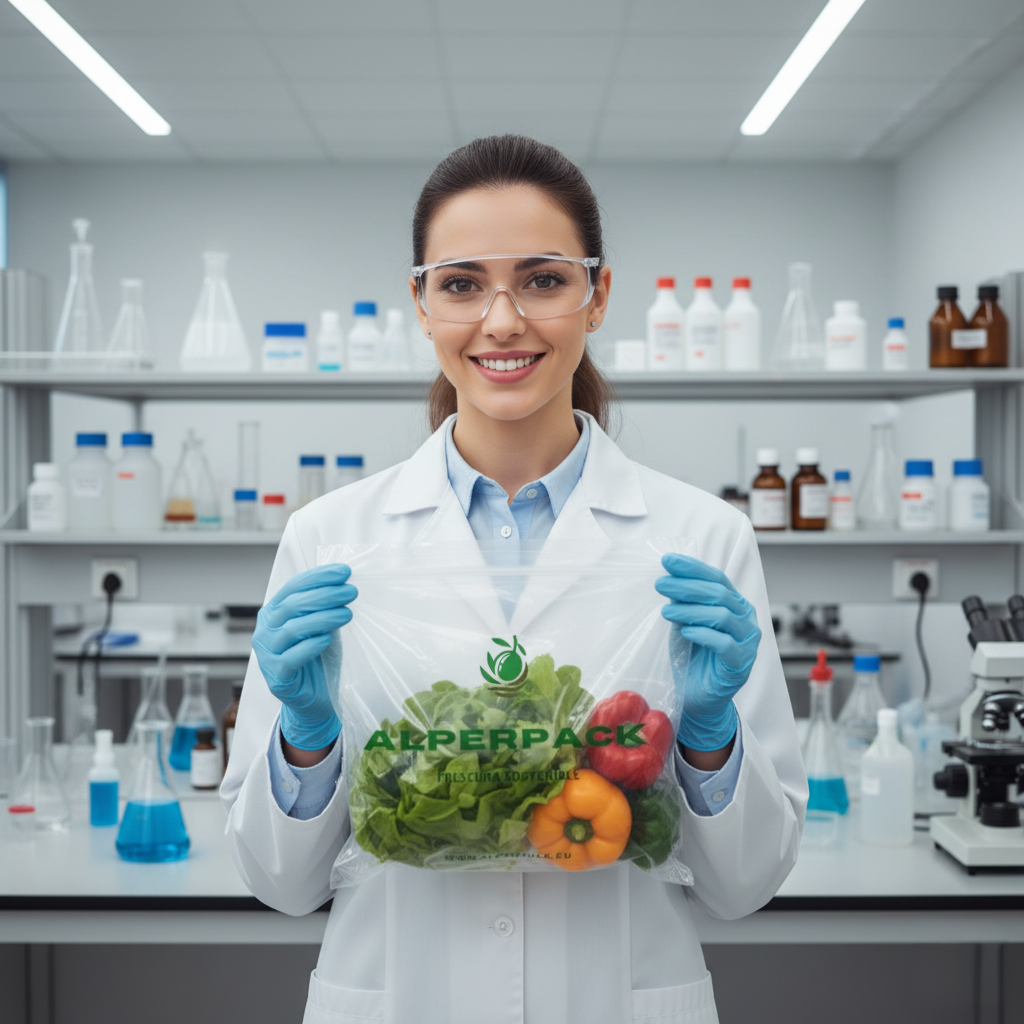 Bobinas de film activo, 100% compostable y comestible, fabricado a partir de alperujo. Nuestros envases están diseñados para alargar la vida útil de frutas y hortalizas frescas gracias a su contenido natural en polifenoles antioxidantes. Cumplen con normativas europeas y son seguros para contacto alimentario.
